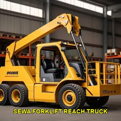 Reach truck adalah jenis alat angkut yang dirancang untuk memindahkan barang di area sempit dengan efisiensi tinggi. Alat ini menggunakan jangkauan tinggi untuk mengambil dan menempatkan barang di rak yang tinggi.